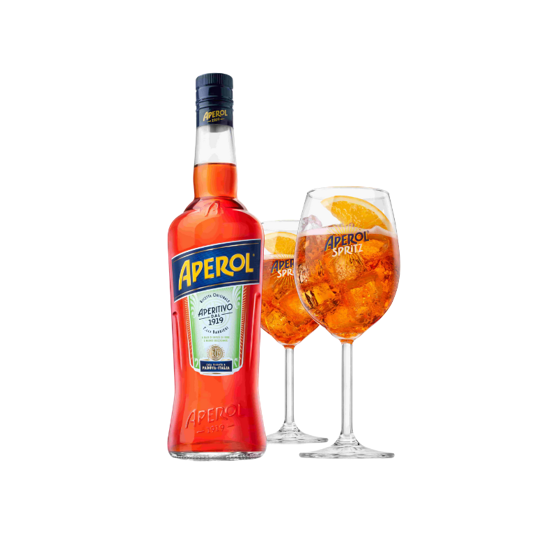 O Aperol é um aperitivo italiano de cor laranja brilhante, possui um sabor único graças a sua receita secreta a base de infusões com ingredientes especialmente selecionados, incluindo laranjas doces e amargas, além de várias outras ervas aromáticas e raízes. Sua principal receita surgiu no verão italiano, misturou-se Aperol com o espumante Prosecco e assim foi criado o famoso Aperol Spritz!