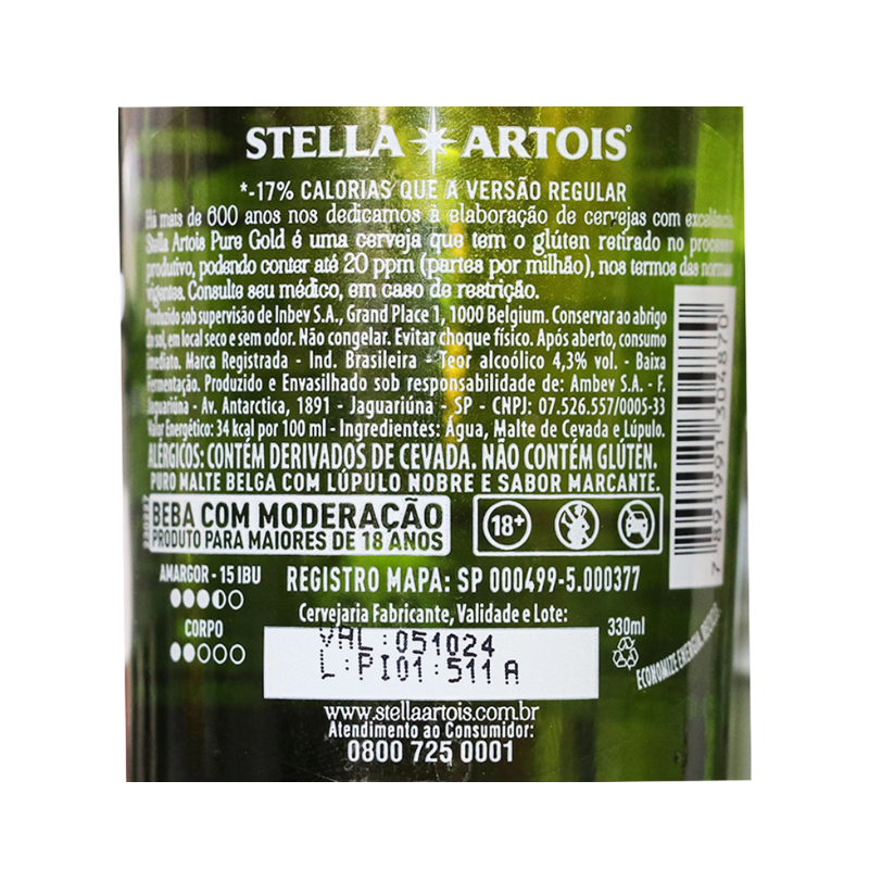 Cerveja Stella Artois Pure Gold Long Neck 330ml