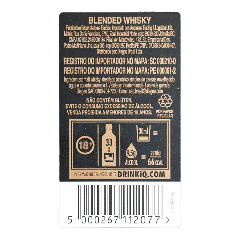 No paladar, entrega uma textura seca e encorpada, com sabores intensos de turfa defumada, madeira e um leve dulçor frutado. Com aparência dourada e reflexos mais escuros, é ideal para acompanhar carnes grelhadas, queijos curados, embutidos ou sobremesas com chocolate amargo. Um whisky robusto, equilibrado e sofisticado, que traduz a profundidade da tradição Johnnie Walker com um toque ousado.
